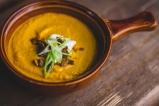 a polévka z "pečené" dýně hokkaido s kokosovou šlehačkou.